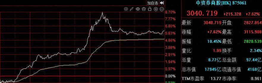A股券商股午后持续走强,广发证券、华泰证券、国盛金控涨停,中信证券等大幅冲高。港股市场中资券商股亦大爆发,中资券商股指数一度大涨近9%。